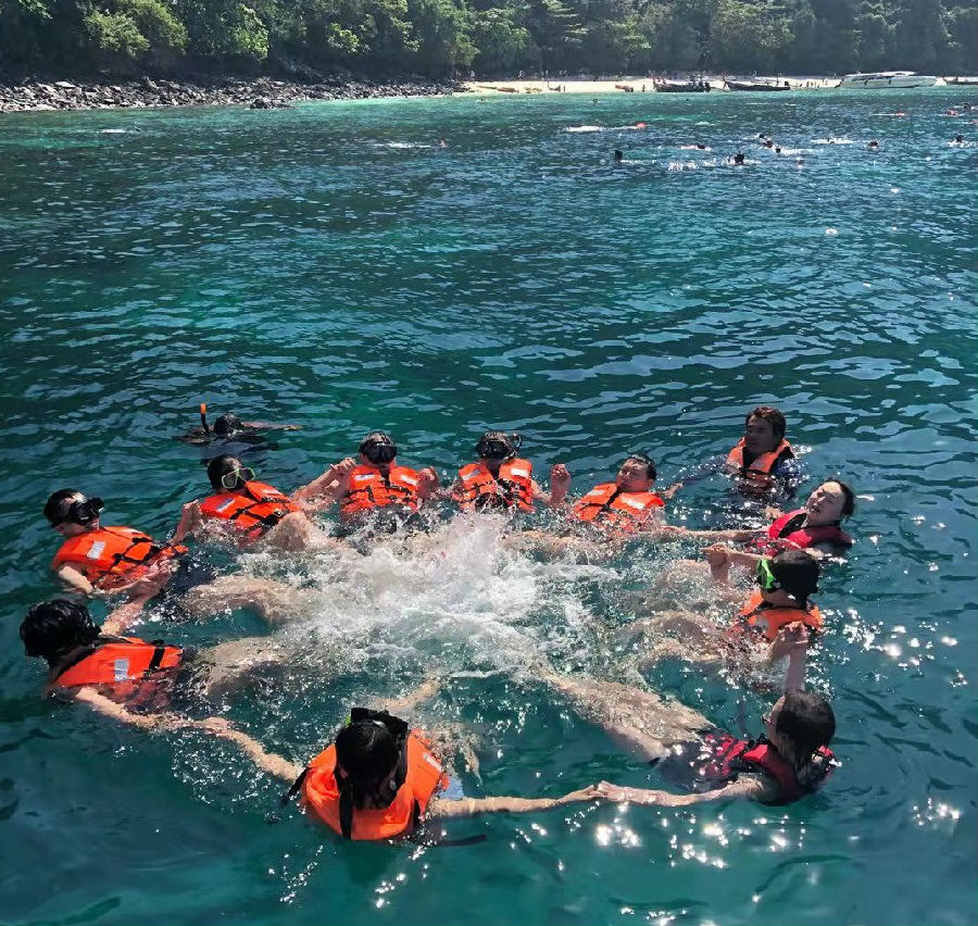 在这6天里,大家暂时卸下平日工作的压力,在普吉岛纵情享受海岛风情,感受海风拂面的惬意,看着湛蓝的天、蔚蓝的海,体验刺激好玩的浮潜,与热带鱼共舞,还亲身体验泰国的丛林骑象和精油spa,观看了西蒙人妖秀。